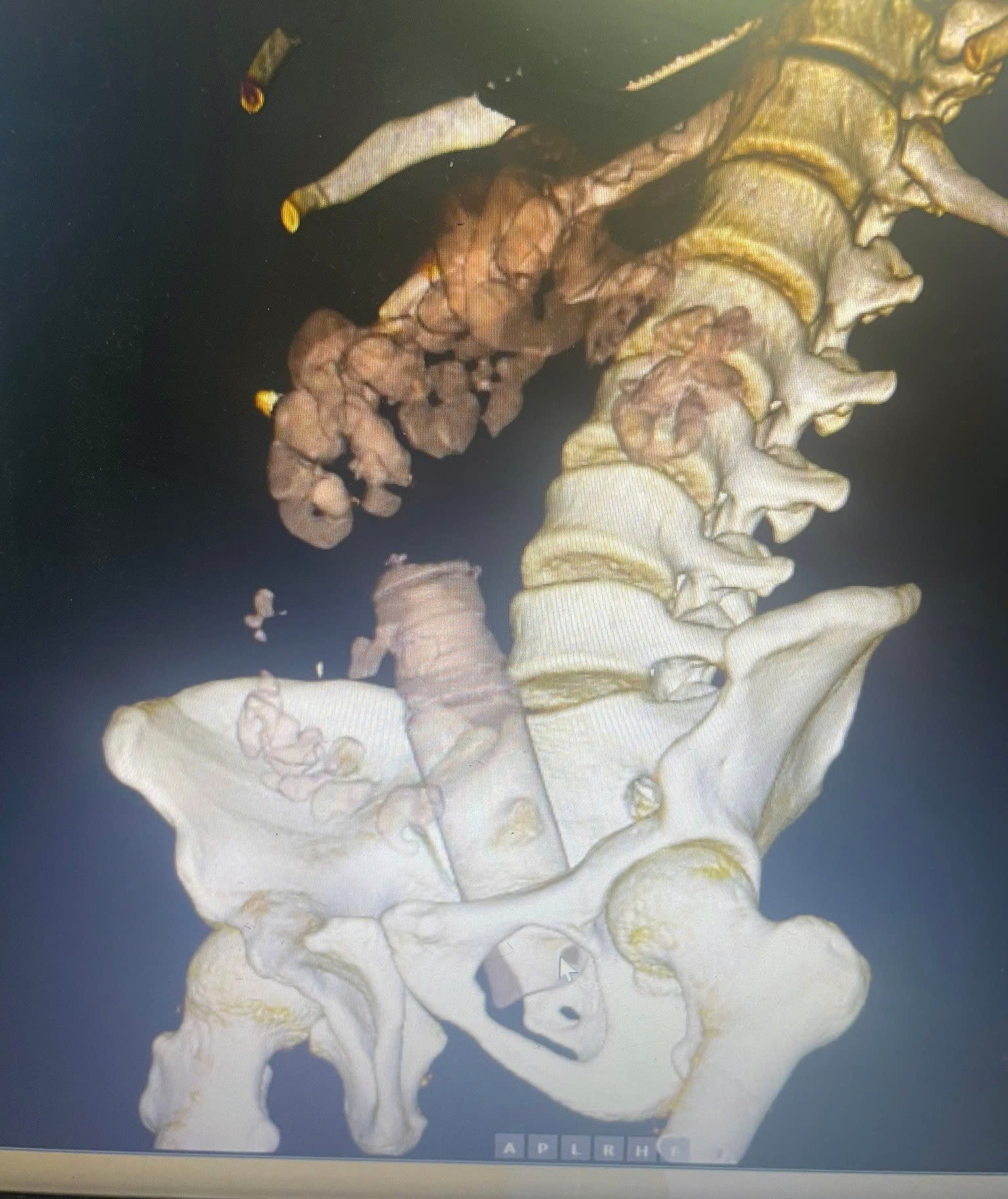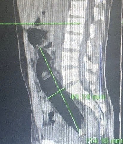 Bệnh viện đã tiến hành chiếu chụp cắt lớp vi tính đánh giá vị trí dị vật và nội soi đại trực tràng để gắp dị vật. Qua phim chụp, bác sĩ cũng hoảng vì dị vât quá lớn chèn vào đường tiêu hóa.